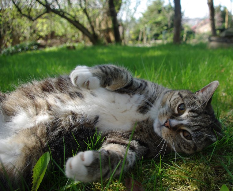 mot andre katter (i fjor ble Sigrid jaget langt opp i et tre av denne katten og hun klarte ikke å komme ned på egenhånd)