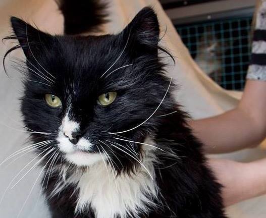 Denne ukastrerte hannkatten har vandret rundt i Kvål sentrum med pelsflokene hengende etter seg.