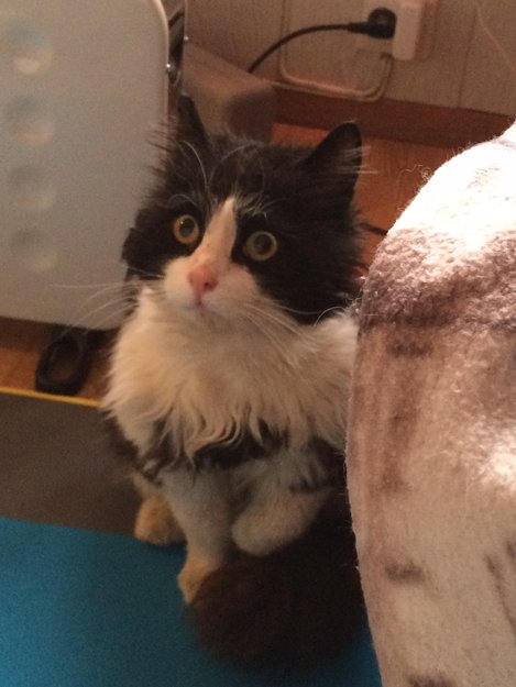 Jeg fikk fanget inn denne med felle i slutten av mai, han hadde nok vært ute lenge (masse tover som måtte barberes osv.) Og han var veldig god og kosete, sjekket av dyrlege og kastrerte han, men han kom seg ut og ble borte igjen så nå har jeg annonse både på funnet og savnet av samme katt (tilfelle eier leter fortsatt). ID-merket tok dyrebeskyttelsen seg av så det er de som kommer opp, men siden han måtte tas med felle er det ikke sikkert noen kommer nærme nok, men hvis noen ser han vet jeg iallefall hvor jeg skal leste :)
