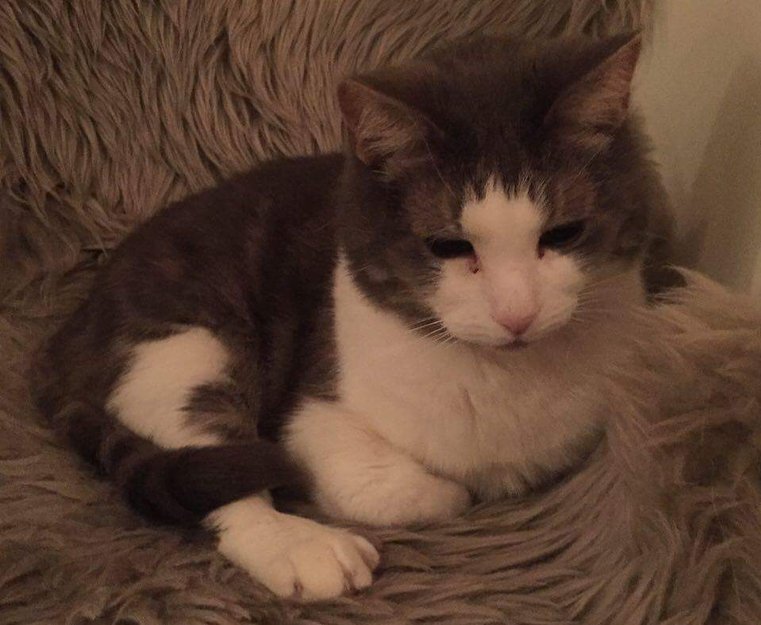 En snill dame fortalte oss at César ble sett ca 1km fra hjemmet på fb. Ble funnet og brakt hjem med sår på nesen og sulten. Har funnet seg godt til rette i sofaen og det ser ikke ut som utelivet frister igjen med det første
