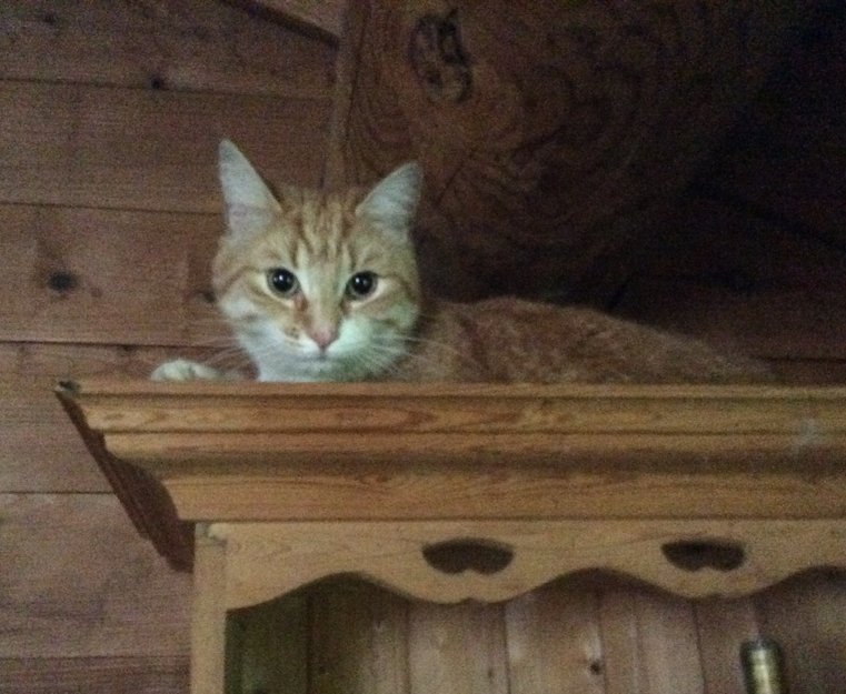 Vår nye pus Luigi, 3 år kastrert hankatt, kom til oss tirsdag forrige uke (21. juni). Han inntok fort toppen av vinhylla (se bilde). Natt til søndag (26. juni) fikk han gå ut for første gang, og vekk ble han. Vi har sett han ett par ganger siden. Har noen av dere sett han?