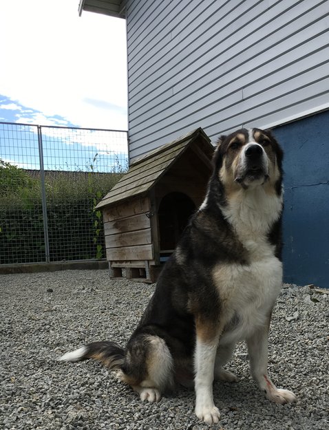 Svart, brun, hvit hannhund ble funnet i Sandnes