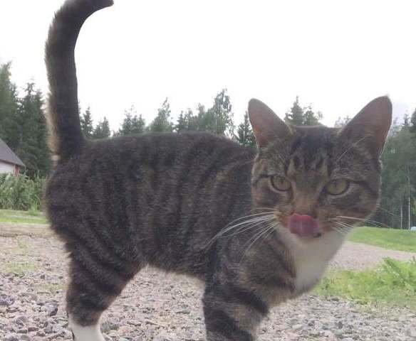 Katten dukket opp meget tynn og sulten. Har vært på samme sted i ca 3 uker. Ukastrert hannkatt som ikke går overens med kattene i nabolaget.