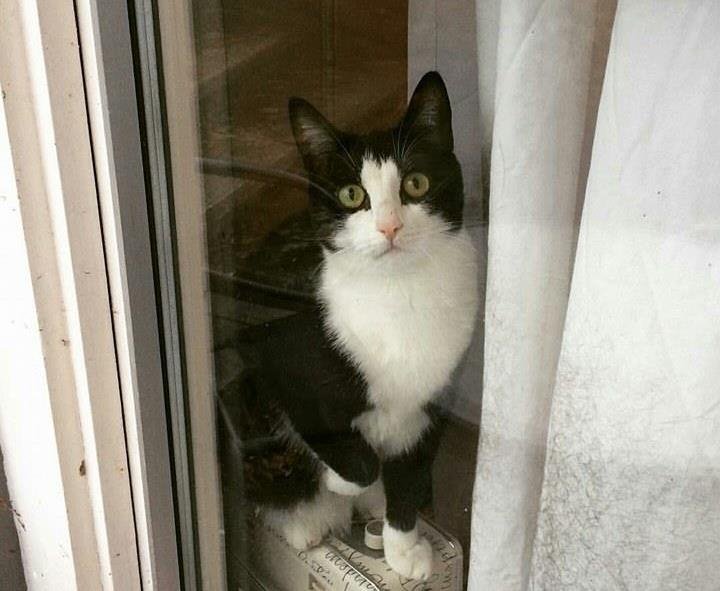 Hun er sort og hvit, har et bittelite arr på nesen (om det ikke har grodd nå), og veldig kjælen & tillitsfull. Hun er sterilistert, ID-merket og chippet.