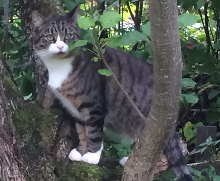 Lystig, 5 år, har vært på vift de siste tre dagene. Er noe sky, men også veldig kjælen når tilliten er der. Mjauer gjerne høylytt.