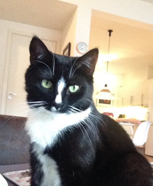 Katten bor egentlig i Bergen, men siden vi skulle på 2 måneder lang ferie skulle Desibel være hos mine foreldre i Son. Den har vært der flere ganger før og er godt kjent med både menneskene og terrasseleiligheten. Desibel er egentlig en innekatt, men har begynt å vise litt interesse for verden utenfor så vi avtalte at når hun skulle være i Son med fine muligheter for å smette inn og ut så skulle hun få lov til det. Hun kom dit i slutten av mai og har vært en del ute på terrassen. Den siste tiden(første dagene i juli) begynte hun å bevege seg utenfor gjerdet også. 8 juli gikk hun ut sent om kvelden og har ikke kommet tilbake. Hun er engstelig av seg for nye mennesker og tørr sannsynligvis ikke komme frem hvis noen ukjente roper på henne. Vi håper folk ringer hvis de lurer på om de har sett henne. Ta et bilde med mobilen og send det til oss. Vi savner henne så inderlig!!