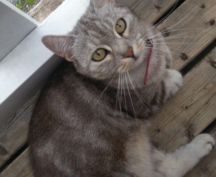 Hun er en mellomstor hunnkatt, svært kosete og tillitsfull. Hun er 10 år og har på seg en lyserosa halsband med "diamanter". Vi så henne sist til frokost på søndags morgen i Ekornvegen, Vikhammer. Hun er også chippet. På hennes 10 år har hun aldri vært ute en hel natt, så vi er svært bekymret for henne. Hun vandrer som regel mellom Ekornvegen, Rådyrvegen, Nedre Stibakken og gullhaugvegen.
