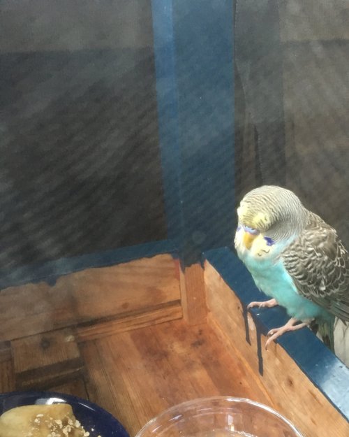 Den lille tamme fuglen oppholdt seg på verandaen på hytta i ettermiddag. Den har fått et provisorisk bur av myggnett og vi håper dieten melder seg snart!
