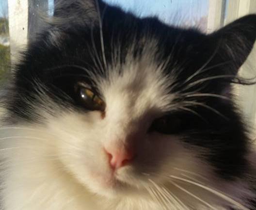 Nova kom seg ut av buret i dag.Hun er redd fremmende da dette er en katt jeg har tatt inn fra gata og jobbet en god del med.Hun er kastrert,chippet og øremerket...Hun er svart og hvit langhåret med spesielle øyne,ser ut som hun har eyeliner på seg ..