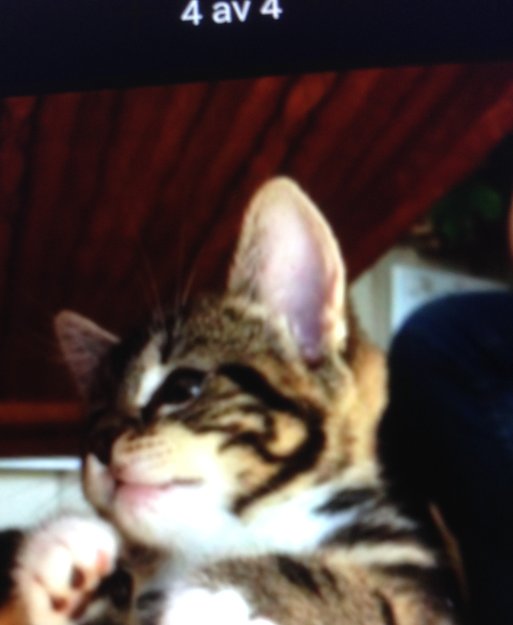 Katten har lite hode i forhold til kroppen. Hun er en katt på 6 år.