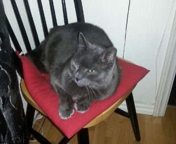 Kåre er 10 år, kastrert hankatt - stor og kraftig - ca 7 kg. Han er ensfarvet grå.