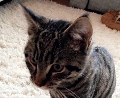 Den ble funnet av en nabo, da den satt i et lite tre i hagen og mjauet. De hjalp den ned og ga den vann. Fikk kattetørrfor hos en nabo som har katt. Da begynte den å mjaue enda mer og ville inn. Kom opp til oss. Veldig fortrolig og tydeligvis en innekatt. Den er meget velstelt og gjør fra seg i kasse. Vi tok den med til veterinærhøyskolen, men den har ikke chip. Har hengt opp lapper i hele nabolaget.