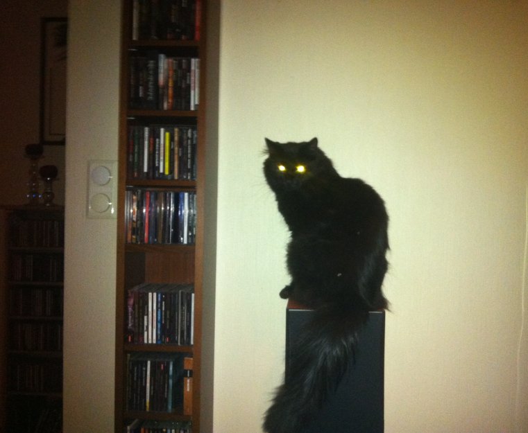 Helt sort med lang hale.Halvlang pels.