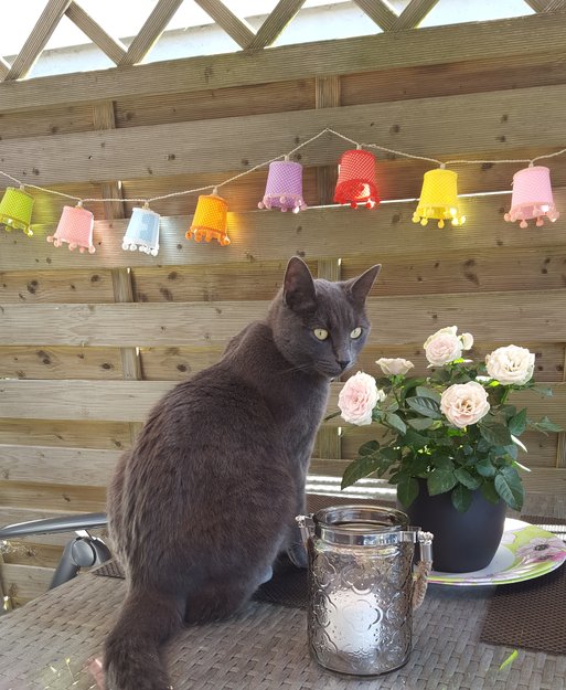 Grå pels, veldige gule øyne! Som skikkelig glugger!