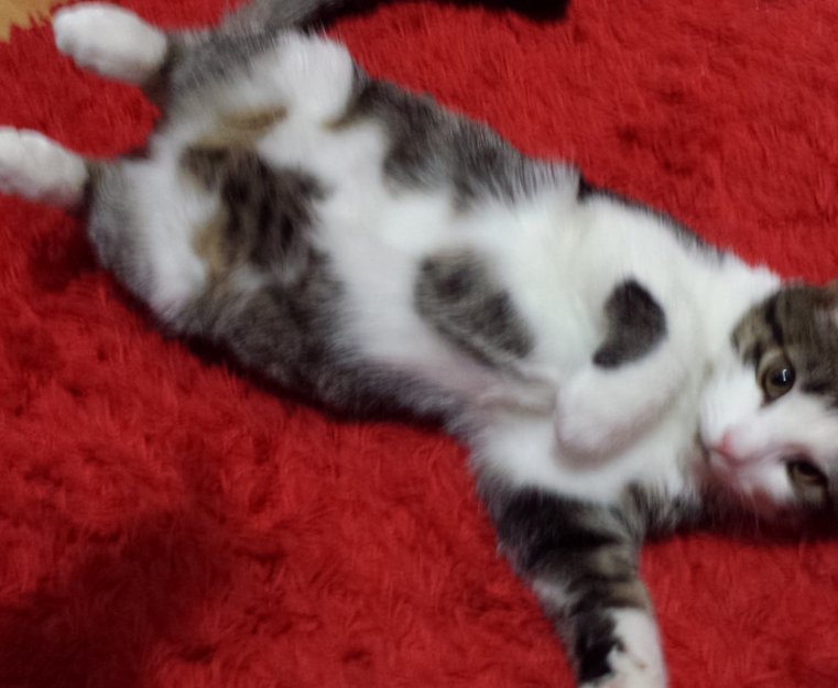 løp av ballkongen katten er 3 år den er svart hvit og litt grå kattens navn er rambo den spiser spesial mat
