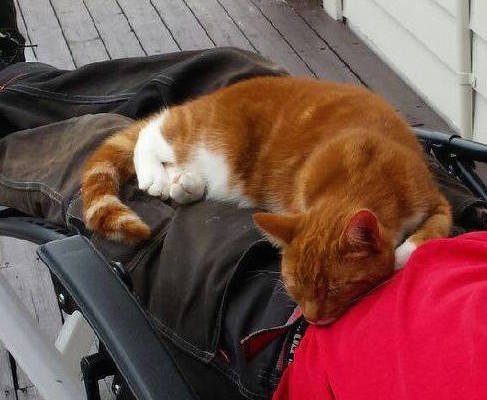 Katten har en mørk oransje/brun farge og er hvit fra haken og ned over brystet. Den har hvite bakbein og oransje forbein som er hvit helt fremme på poten. denne katten er kosete og søke menneske kontakt.