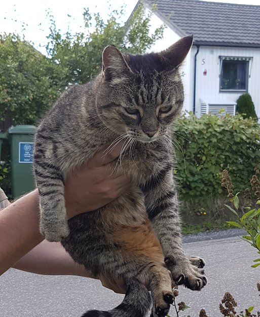 Kom hjem fra ferie 31 juli og oppdaget en veldig kosete katt. Nabo fortalte at den hadde gått rundt i veien her i 2-3 dager.