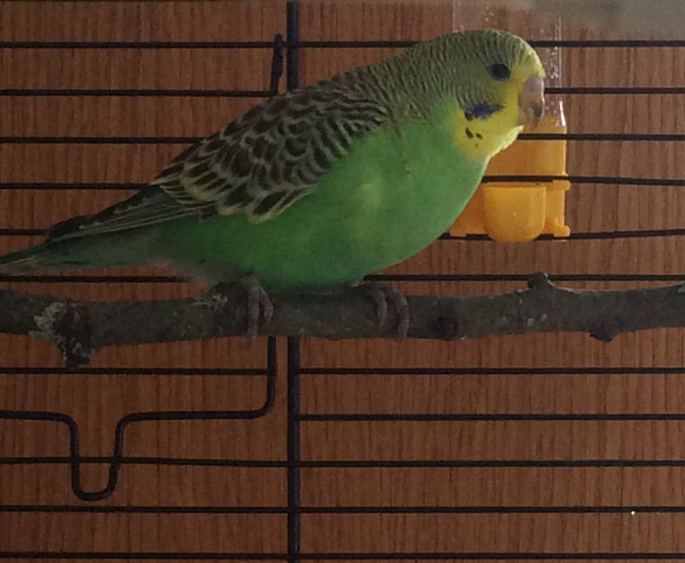 Gul og grønn undulat funnet i Drammen. Den virket svært sliten og har kanskje flydd langt.
