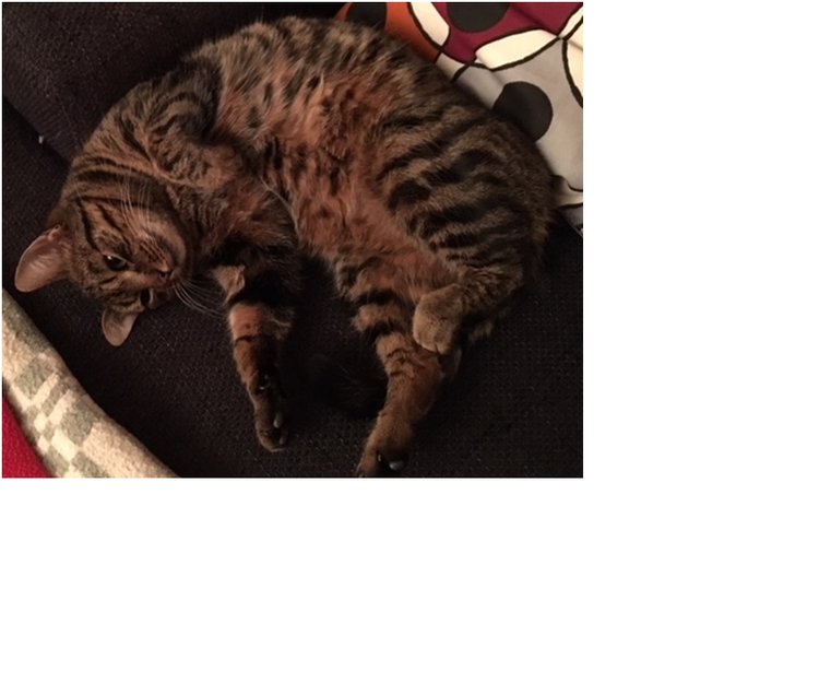 Brunere pels på magen. Hvit prikk på det ene øret. Sosial og snakker mye.