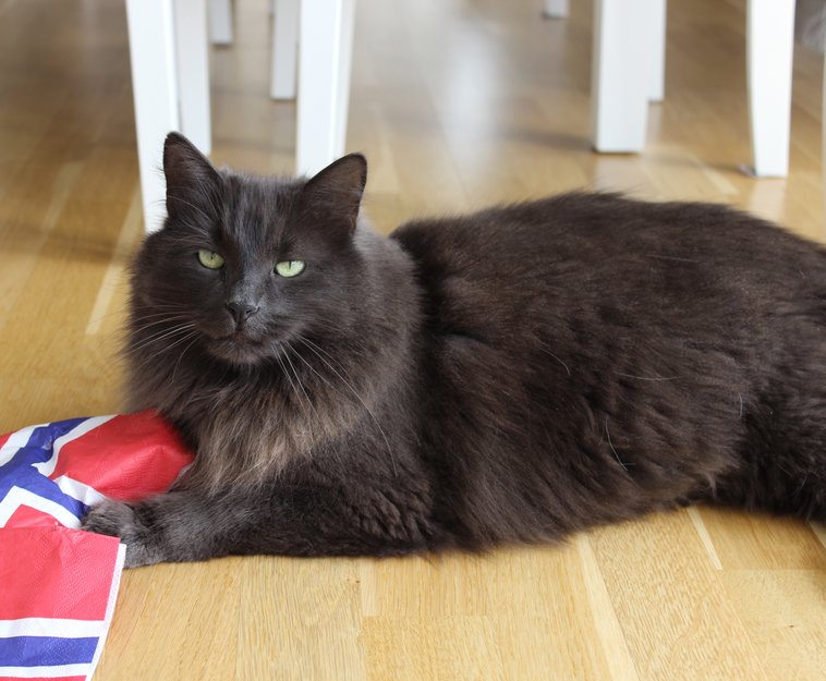 Hun har grå lang pels og mjauer hvis man prater til henne.