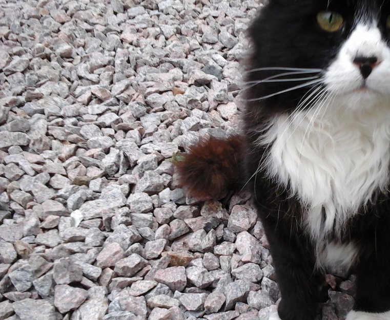 Denne katten har oppholdt seg ved Spar Våler i lang tid, men nå er pelsen fæl.. Den har nå mistet det flaket med pels den hadde på ryggen. Det er en ukastrert hannkatt... Den bor nå hjemme hos oss, og der blir den kanskje ,hvis våre katter godtar det....
