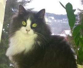 Champis er 3 år gammel, hun er helgrå, med hvit snute, hvit nedover halsen og hvite poter. Hun har lang pels, og er litt lubben, med en tynn grå hale. Hun er til vanlig veldig rolig, og er glad i mat og kos😊
