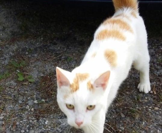 Den veldig kjælne unge hannkatten har hengt rundt en hytte på Knardal i et par måneders tid. Han er sulten på mat, og ikke minst kos. Han blir tatt hånd om av Nesoddkatten inntil en evt eier melder seg.
