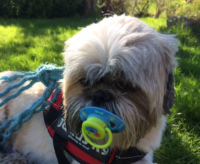 Han er en snill hund som er glad i mennesker, så ikke vær redd for å ta kontakt med han. Lyder navnet sitt, men det er ikke alltid han kommer når man roper. Han er mer kortklipt enn på bildet, så han er mindre enn bildet viser. Nokså barbert på kroppen, mer pels i ansiktet.