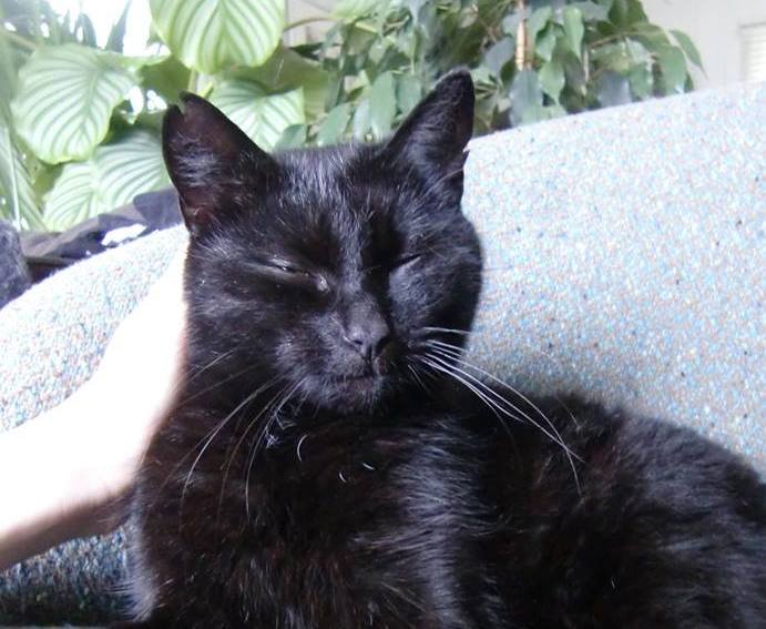 Litt tykk og med et kutt i høyre øre. Noen hvite hår på brystet.
