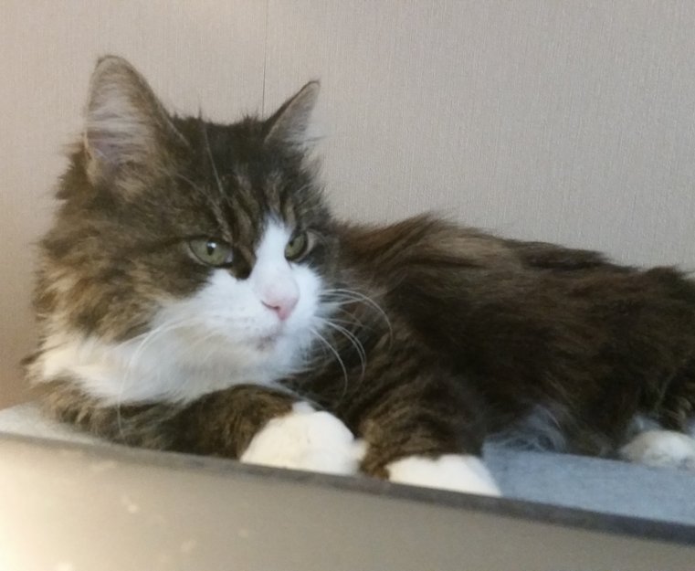 Katten min Snehvit kom seg ut i dag morges av et åpent vindu. Hun er helt avhengig av medisiner og må ha det morgen og kveld. Hun er ganske sky overfor fremmede og ser noen henne må de ringe meg. Jeg savner henne veldig.