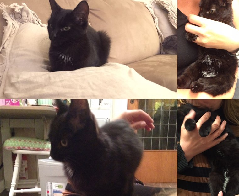 Ca 4 mnd gammel kattunge. Hunnkatt, umerket/ikke chip/ funnet på Volla, Lillestrøm, sent på kvelden den 11.08.16. Var redd og sulten. Svart med hvit markering på bryst og mage. Svært sosial og kosete.