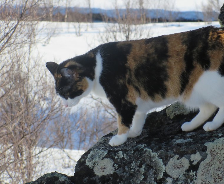 Lyra ble funnet av en snårrådig dame på Ljanskollen, som skjønte at den selskapssyke katten i hagen nok var bortkommen, og klarte både å få sjekket savnet-plakaten og ringt oss mens hun hold kontroll på katten. Kjempeinnsats! Lyra er i fin form etter mer enn to uker på farten, litt tynnere og med noen store flått, men sosial og kosete og kjempeglad for å være i trygge omgivelser igjen. Vi hadde omtrent gitt opp, og er enormt lettet og glade :-)