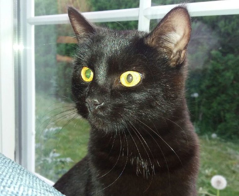 Omtrent et halvt år gammel. Ikke sterilisert eller id-merket. Slank og langbeint. Lite hvitt område på brystet.