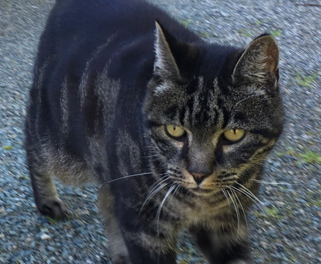 Sulten og tillitsfull hannkatt holder til rundt huset jg flyttet inn i i slutten av juli. Han går inn hos meg og er veldig kosete. Virker som om han ikke går hjem til eier.