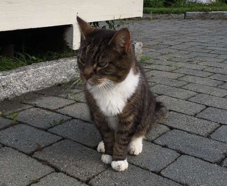 Katten har oppholdt seg i hagen min i over 1 måned. Har levert katten til heimdal dyreklinikk hvor de sa eieren var på ferie. Dagen etter den ble hentet av noen andre kom katten tilbake. Den sover i hagen min og virker svært kontaktsøkende.