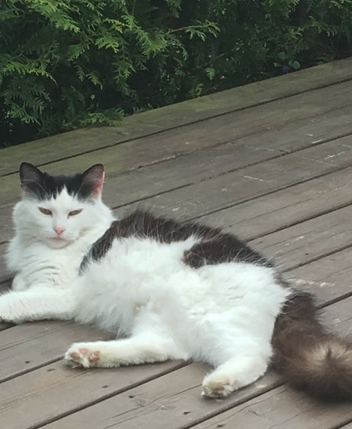 Hvit og sort jentepus har ikke kommet hjem siden fredag 19.8. Hun er veldig hjemmekjær og er aldri langt eller lenge borte. Litt sky mot fremmede men nyskjerrig på åpne garasjer og bildører. Liten av vekst og hvit i nakken med sorte "kobra" tegninger i nakken.