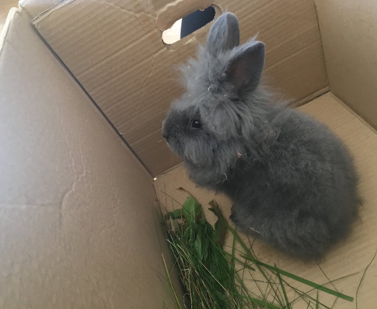 Morgenen 18.august fant vi denne lille kaninen hoppende utenfor huset. Hun var nokså sky, men hun kom bort for å spise. Hun var veldig rolig, og prøvde aldri å bite noen. Vi fikk tak i henne, etter en stund, og nå er hun hos oss.