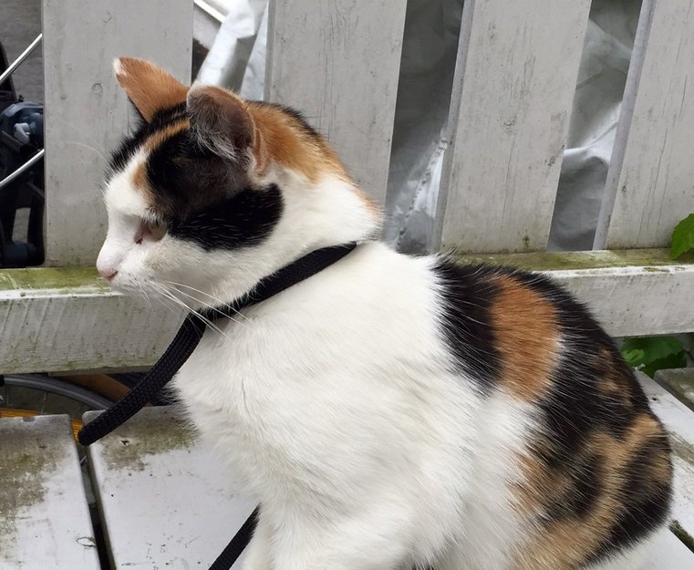 Siri har nettopp flyttet inn hos oss etter omplassering. Hun har vært holdt inne i tre uker før hun plutselig smatt ut og forsvant. Vi er redd hun kanskje har løpetid nå og vi har ikke rukket å sterilisere henne ennå. Hun er veldig snill og kjælen, men litt redd. Hun er chippet men ikke merket i øret ennå.
