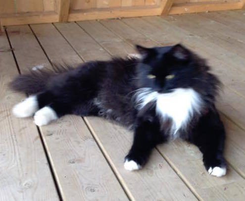 Markussen var borte i 16 uker. Han tok selv affære å oppsøkte et hus på Furustad ved å banke på terrassedørvinduet med poten, noe han pleier å gjøre hjemme. Kona i huset lukket ham inn, og husket at hun hadde sett ham annonsert i lokalavisa. Hun ringte dit og ble satt i kontakt med eier. Markussen var dager fra døden, så det var i grevens tid. Han har fått intravenøs væske og markkur i går, og mat i små porsjoner, så han begynner allerede å vise tegn til bedring, på tross av at alt av fett og muskler så og si var borte. Takk til alle som har holdt utkikk etter ham. <3
