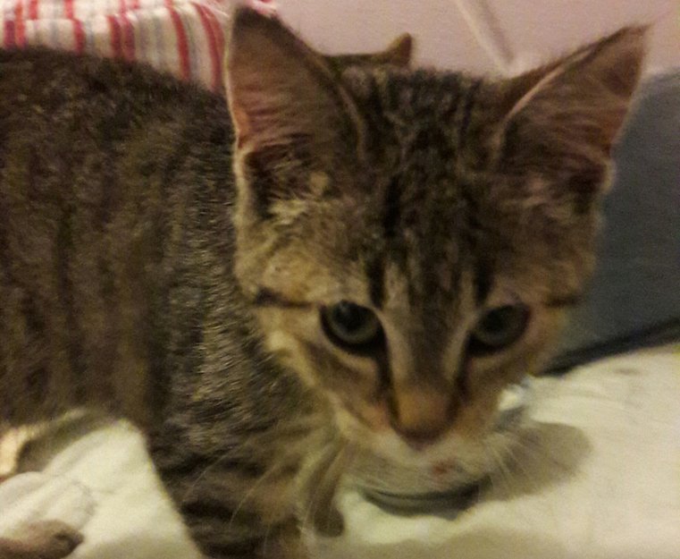 Kattungen dukka opp ved ein parkeringsplass i boligområdet i 16 tida 31.08.16. Den fulgte nokon til døra og ville inn. Ho er ca 4 mnd gammel og skulle ikkje vore ute aleine. Det kan tenkes ho har vore blindpassasjer i ein bil, og kan derfor ha kome frå kor som helst.