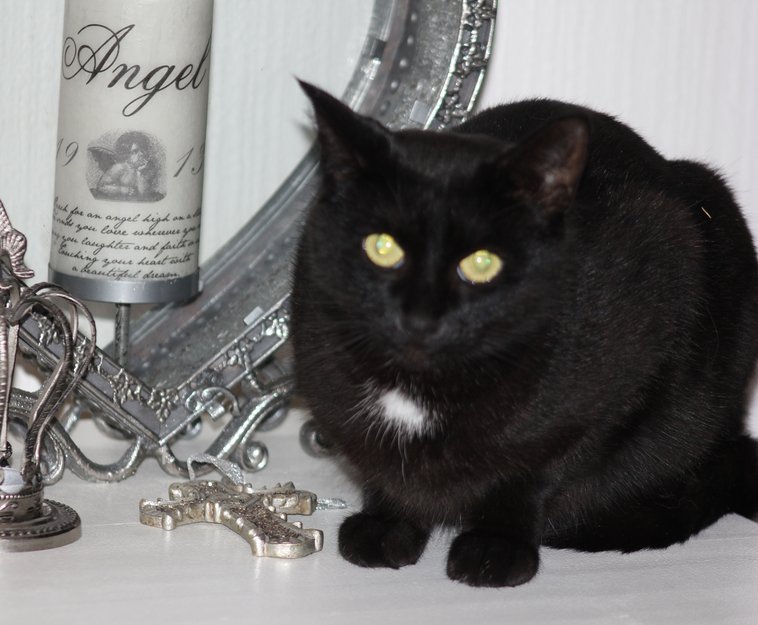 Sort med hvit merke på bryst og noe hvitt under buken . Liten av vekst . Sky og skvetten for ukjente lyder . Hjemme en kosekatt som elsker å ligge i armkroken og kose . Oppfordrer alle som har kjellere , ute boder i området rundt Søbstadmyra Borettslag og sjekke disse i tilfelle hun er innestengt . Svært uvant Stjerne og være borte i flere dager .