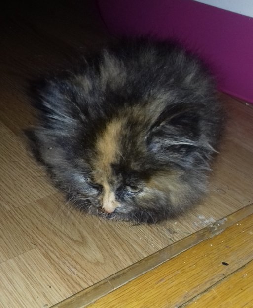 Fant en liten kattunge, kanskje 5-6 mnd. på fotballbanen på Matrand. Tillitsfull og kosete.