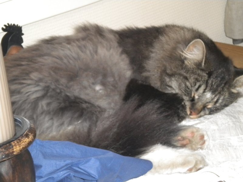 Leon kom hjem i går, sulten og kosete etter 6 dager på tur :) Så når har pusegutt fått god mat og husarrest :))