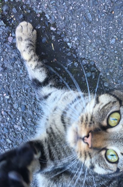Katt streifer rundt i området på Brobekk. Den er veldig tam og kosete.