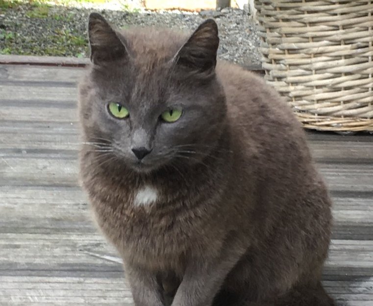 Den hadde fått 4 kattunger under kvisthaugen i Hagen vår. Så i juni/juli kom reven og tok tre av dei.og siden har hun sittet på vår trapp.