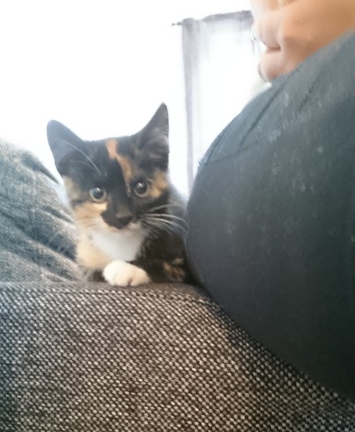Oransje, svart, hvit hunnkatt ble funnet i Hamar
