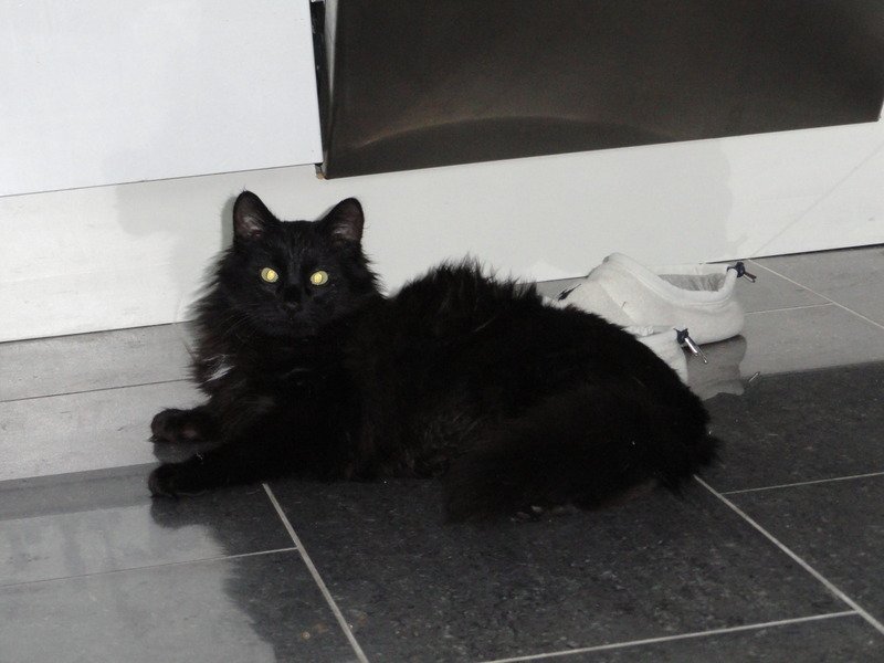 Bjørn er en svart, langhåret 10 mnd gammel hann katt med en liten hvit flekk på brystet/under haka. Kjempe kos, leken og tilitsfull. Spiser det meste han kommer over av mat.