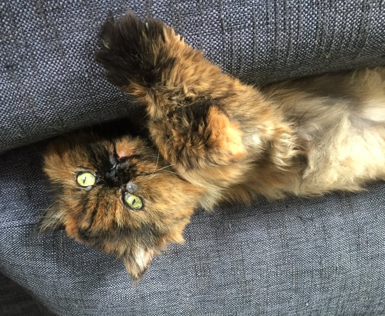 Hun ble barbert før påske,så har ikke full lengde på pels nå. Hun er 20 år,ser og hører dårlig og er ganske sky.