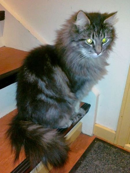 Forsvant fra Nidarvoll 13.02.11 på formiddagen.Pleier å ta korte lufteturer når det er så kaldt og mye vind. Han har vært borte i 12 dager en gang før.Det var på sommeren. Han fant da veien hjem selv, tynn og utslitt.Savnes veldig.