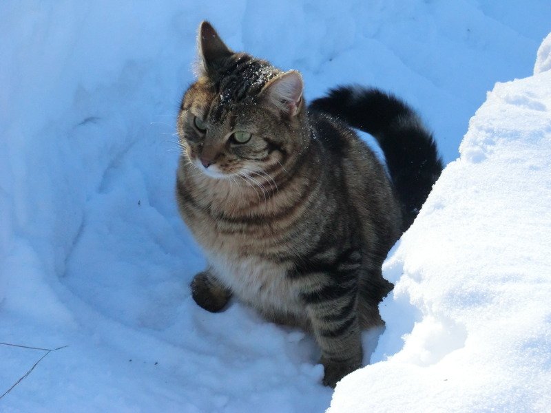Etter fire dager ute i opptil minus 20 grader stod Findus på trappa!Vi kom akkurat hjem fra nok et raid i nabolaget hvor vi hadde hengt opp flere savnet-lapper fra www.dyrebar - og lagt 100 ark i postkassene med oppfordring om å se etter om han kunne være innstengt i garasjer, kjeller etc.